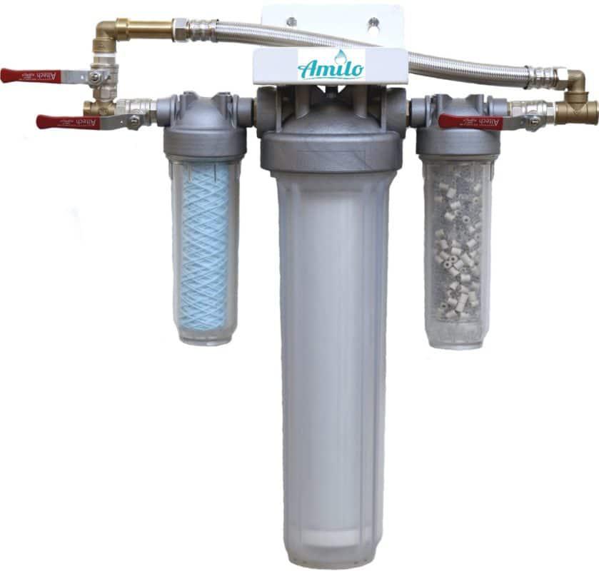 Le système comporte 3 porte-filtres imprégnés à l’argent grâce à une technologie exclusive brevetée pour une action bactériostatique sur toute la ligne de filtration, permettant une longévité accrue des cartouches filtrantes.