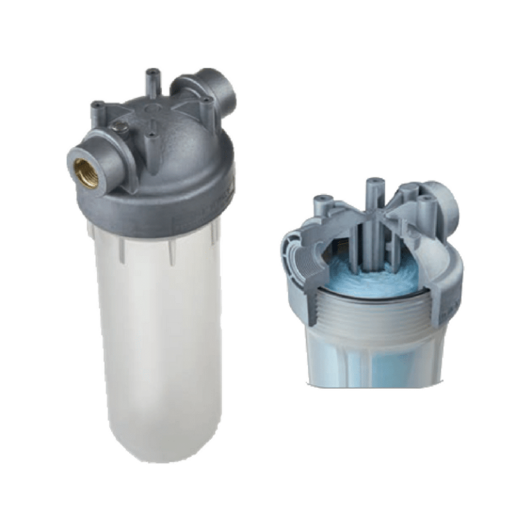 La première cartouche est dédiée à la préfiltration dans l’optique de protéger la cartouche de filtration fine qui suit. Cela favorise ainsi une bonne qualité de filtration sur la durée, sans perte de débit et sans obstruction irrégulière liées à des particules sédimentaires de grosses tailles qui peuvent se trouver dans l’eau occasionnellement.